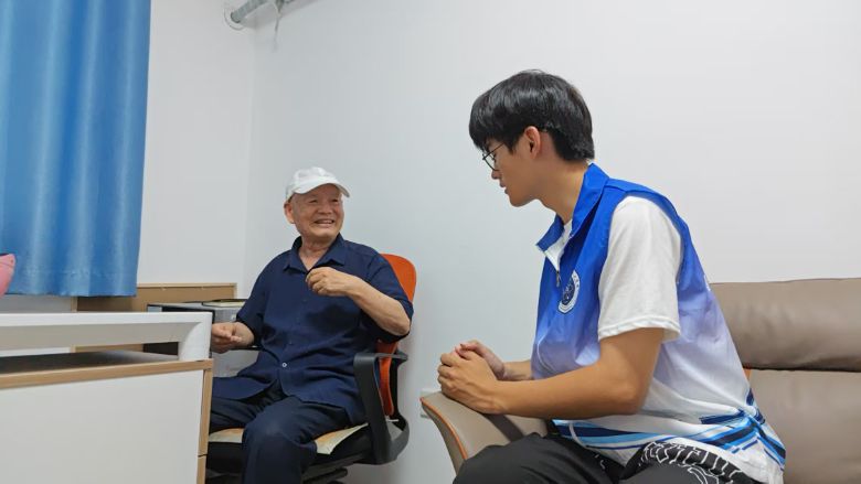 (圖為塔里木大學(xué)學(xué)生采訪老黨員)