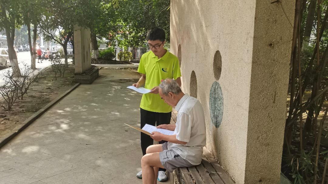 圖為實(shí)踐隊(duì)員為老年人科普健康知識