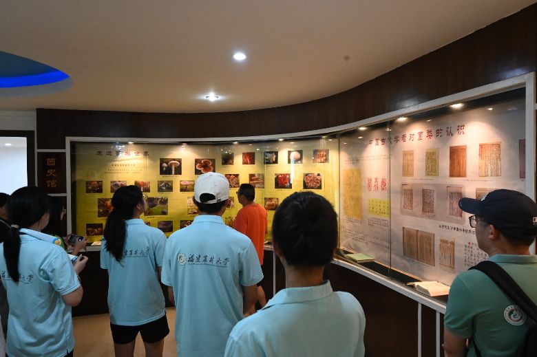 菌史館:溯源千年菇業根脈“農收村落盛,社樹新老移”,食用菌栽培是先輩們智慧的傳承。菌史館內,泛黃的古文史資料與泛黃老照片靜靜陳列,串聯起古田菇業千年發展脈絡。“從野外偶然發現菌株到現代人工選育,每一步都是先輩智慧的結晶。”負責人緩緩講述,那些記載著明清栽培技法的文獻與模擬古人采種的場景復原,讓人仿佛看見先民循著 “春采、夏培、秋藏” 的規律在山林間耕耘的身影。正如“采菊東籬下,悠然見南山”的意境,先輩們以汗水澆灌出食用菌產業的序章,讓實踐隊員真切觸摸到傳統技藝的歷史溫度。