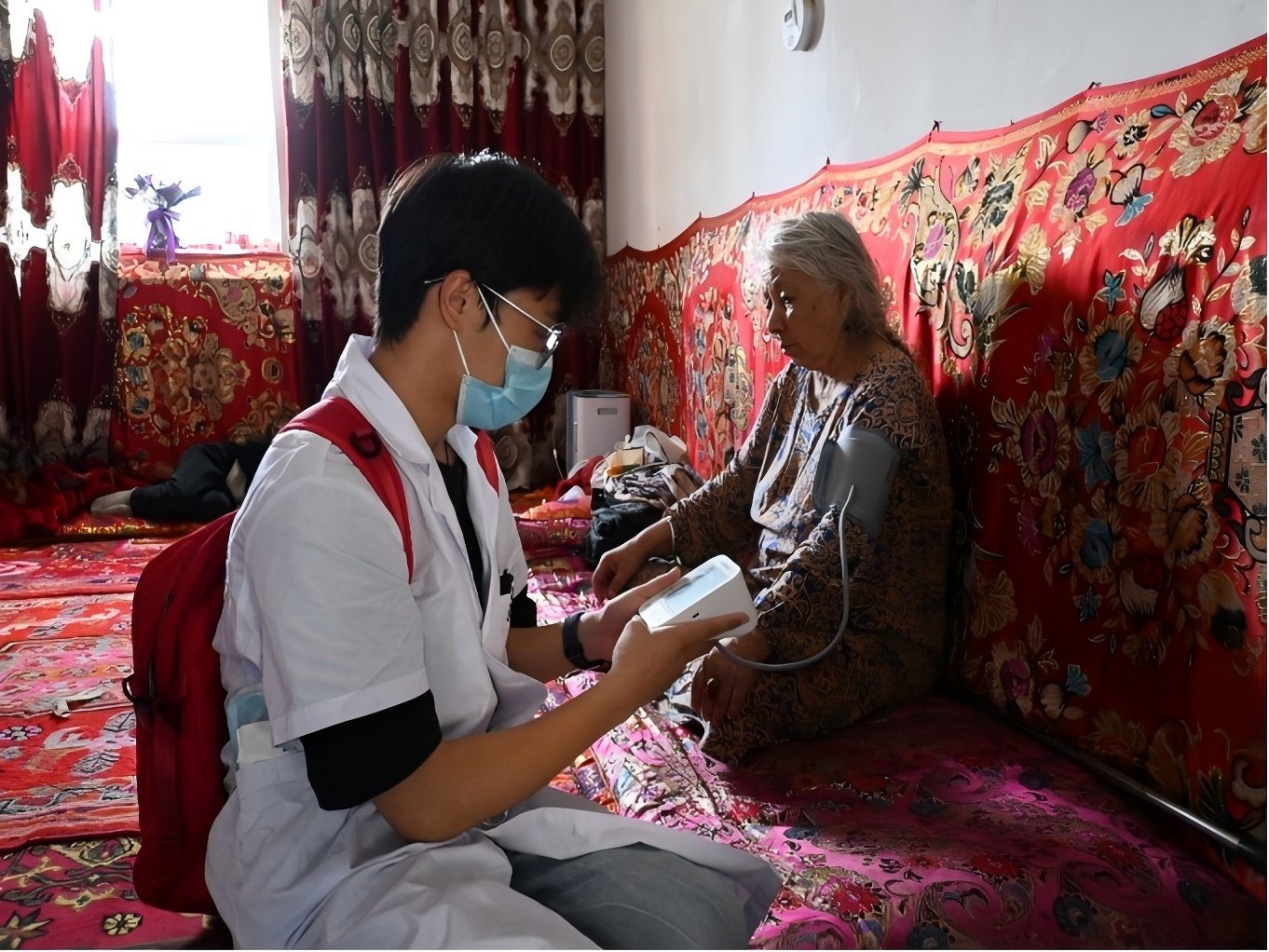 7月3日,在指導老師孫立穩的帶領下,醫學院“醫”心“醫”益,防“微”守康暑期“三下鄉”醫療志愿服務隊深入新疆阿拉爾五團三連少數民族家庭,開展入戶健康義檢服務活動,青年醫者們以仁心與專業,將健康守護送至民族連隊的家門口。