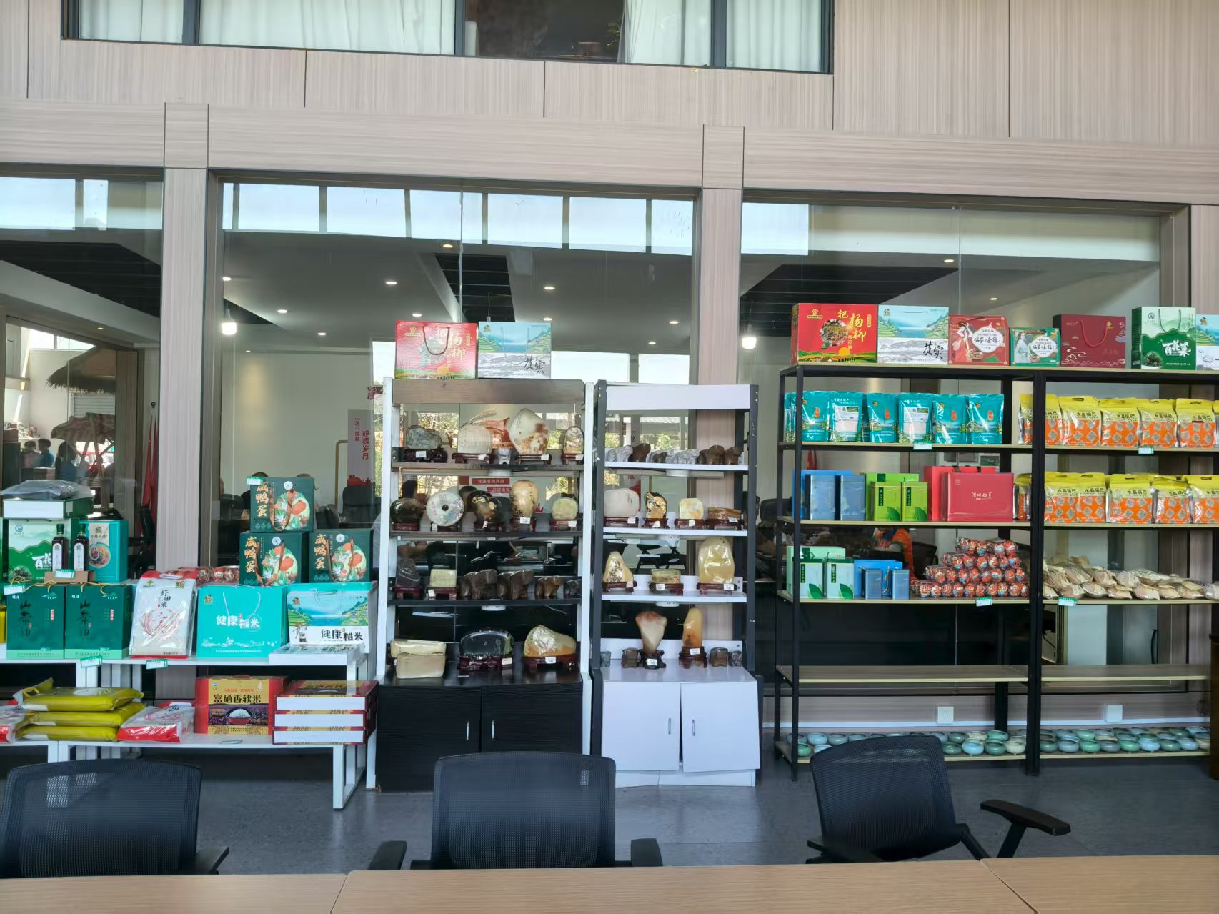 漫步其間,同大鎮(zhèn)特產(chǎn)在屋內(nèi)有序擺放,散發(fā)著鄉(xiāng)土的氣息。最引人注目的當(dāng)屬同大鎮(zhèn)稻蝦米展區(qū),圖文并茂的展板、飽滿的稻蝦米實物以及生動的影像資料,全方位、多角度地展現(xiàn)了稻蝦共作模式下稻蝦米的生產(chǎn)全過程。“這種模式不僅讓稻米品質(zhì)更優(yōu),還提高土地的綜合效益,文旅發(fā)展起來后,產(chǎn)品更是不愁賣。”稻夢空間負(fù)責(zé)人在接受調(diào)研團(tuán)采訪時說道,言語中滿是對這種模式的認(rèn)可與自豪。調(diào)研團(tuán)成員認(rèn)真聆聽介紹,不時提問交流,深入了解稻蝦共作模式的優(yōu)勢以及文旅產(chǎn)業(yè)對農(nóng)業(yè)發(fā)展的帶動作用。