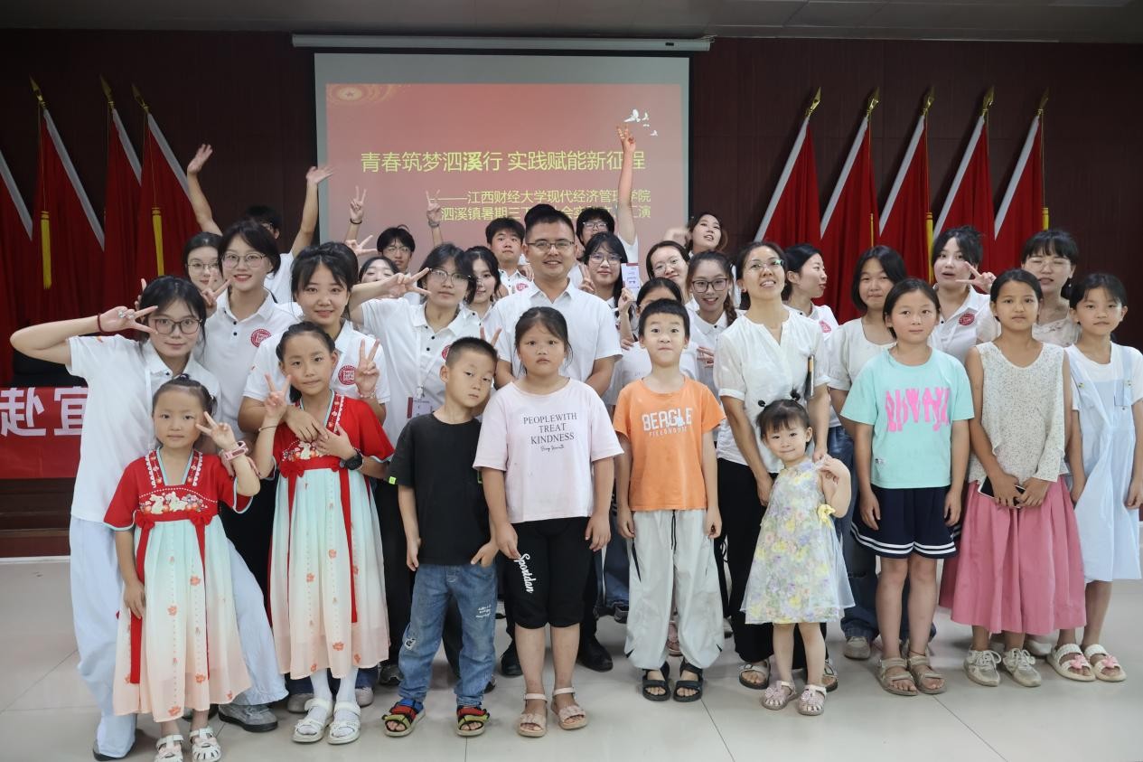 為傳遞青春筑夢、實踐賦能的價值,7月8日上午,在泗溪鎮新文明實踐站會議廳,江西財經大學現代經濟管理學院赴宜春市上高縣泗溪鎮基層服務踐行團開展了一場以“青春筑夢泗溪行,實踐賦能新征程”為主題的三下鄉文藝匯演璀璨啟幕,為當地觀眾獻上視聽盛宴,也成為參與者難忘的夏日記憶。