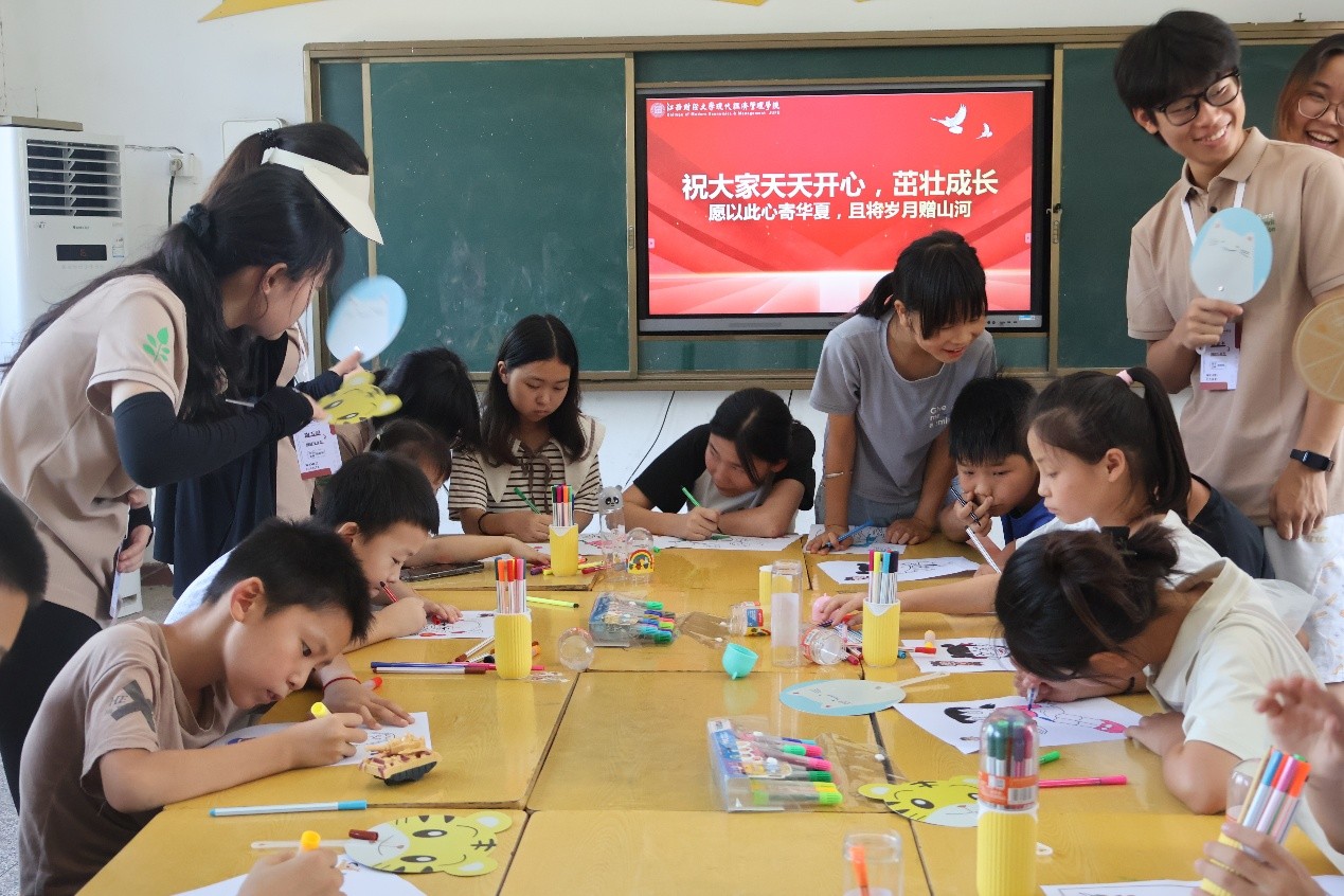 為培養學生的愛國主義情懷,激發孩子們的藝術潛能,江西財經大學現代經濟管理學院赴宜春市上高縣泗溪鎮基層服務踐行團于7月6日在洋港村童心港灣舉辦了一場愛心支教活動。