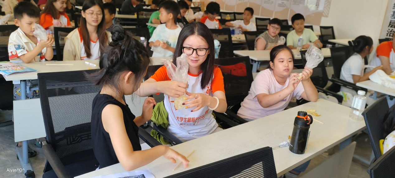 在之后的香蕉DNA提取實(shí)驗(yàn)的講解中,志愿者陶錦祎通過(guò)科普視頻以及自己結(jié)合了自身專業(yè)知識(shí)的講述向孩子們展示了什么是DNA以及DNA的作用,并帶領(lǐng)孩子們動(dòng)手完成“香蕉DNA提取實(shí)驗(yàn)”。當(dāng)觀察到DNA絮狀物時(shí),孩子們發(fā)出陣陣驚嘆:“原來(lái)生命的奧秘就藏在這些小小的細(xì)胞里!”實(shí)驗(yàn)不僅鍛煉了他們的動(dòng)手能力,更讓他們直觀感受到科學(xué)的魅力。