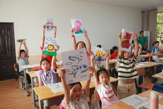 圖為暑托班小朋友與自己畫作的合影 趙珉熠供圖