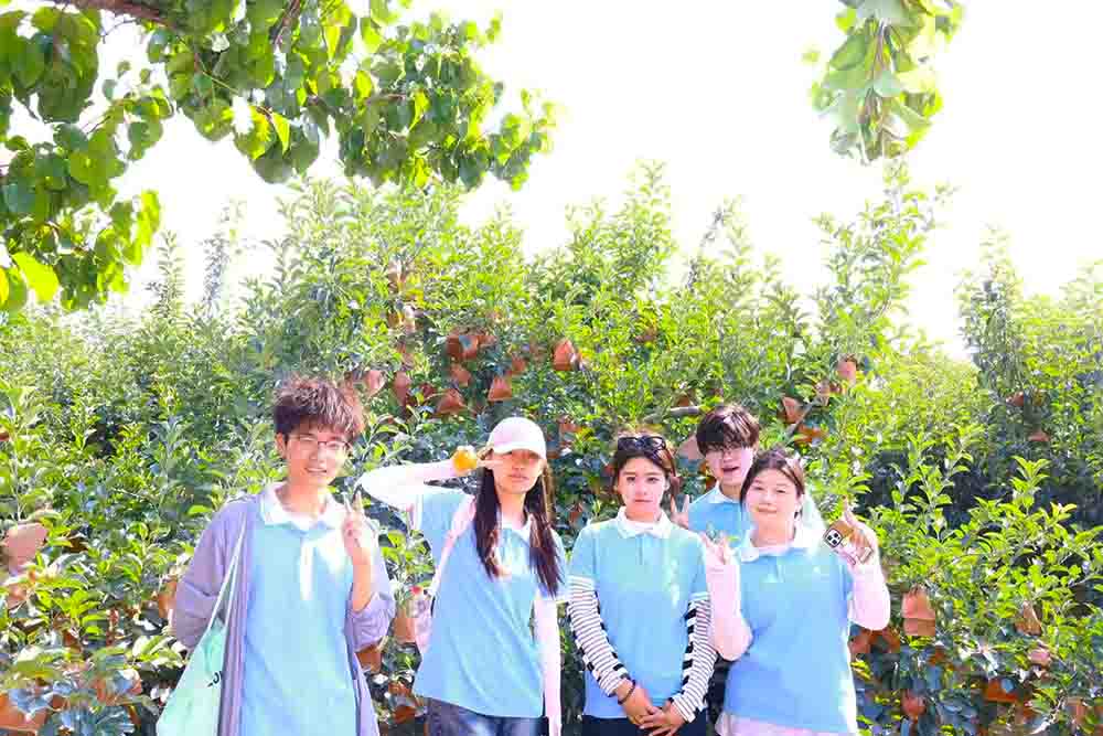 在棲霞市蘋果種植示范基地技術(shù)人員的帶領(lǐng)下,實踐隊分組展開實地調(diào)研。團(tuán)隊特別考察了博士達(dá)集團(tuán)有機(jī)蘋果范園,該園區(qū)采用寬行密植栽培模式,應(yīng)用頻振式殺蟲燈、無公害生物農(nóng)藥等綠色防控技術(shù),并創(chuàng)新性地引入"音樂培育法",通過播放舒緩音樂促進(jìn)蘋果生長,使果實糖度穩(wěn)定在13度以上。此外,博士達(dá)集團(tuán)還投資8000余萬元建設(shè)深加工產(chǎn)業(yè)園,引進(jìn)法國邁夫智能分選設(shè)備,實現(xiàn)蘋果糖度、霉心病等指標(biāo)的精準(zhǔn)檢測,年加工能力達(dá)1萬噸,為棲霞蘋果的高端化發(fā)展提供了重要支撐。
