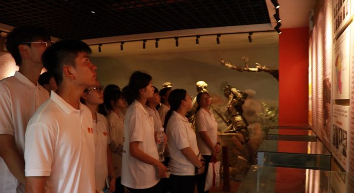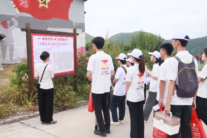 (圖為實踐隊參觀板袍村紅軍陳列廳)