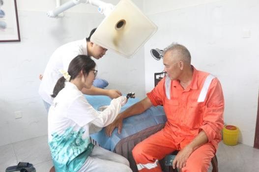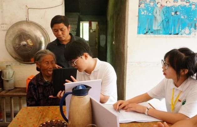 團隊走進萬安縣西元村、路口村開展入戶健康普查,隊員們頂著烈日穿行在田間小路,挨家挨戶為村民量血壓、貼壓耳穴,通過AI舌診分析、健康問卷普查等方式詳細了解村民的身體狀況和健康需求。