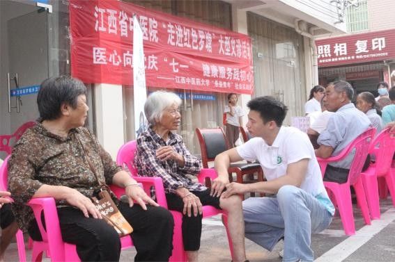 團隊聯合江西省中醫院醫生專家在紅色羅塘村開展以“醫心向黨慶七一 健康服務踐初心”為主題的大型義診活動。活動現場,前來咨詢和就診的居民絡繹不絕,醫生專家耐心解答村民所咨詢的健康問題,通過細致診斷介紹個性化治療方案,現場為村民提供推拿、艾灸等中醫特色服務。