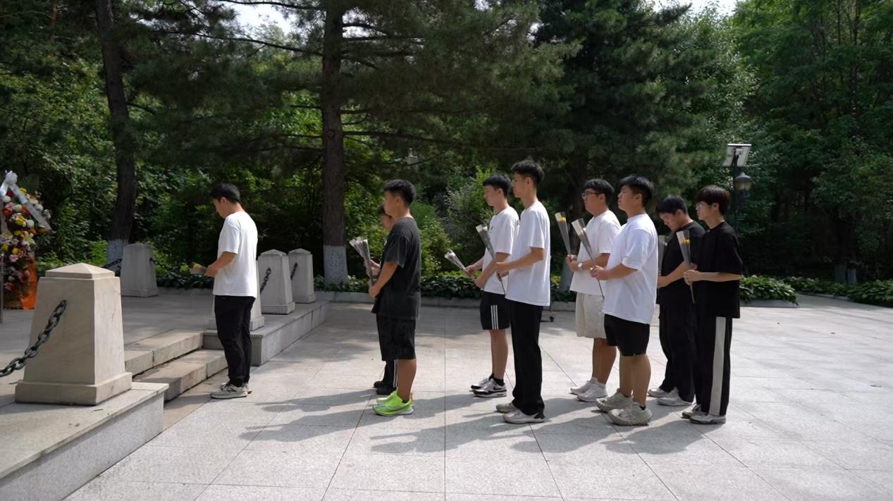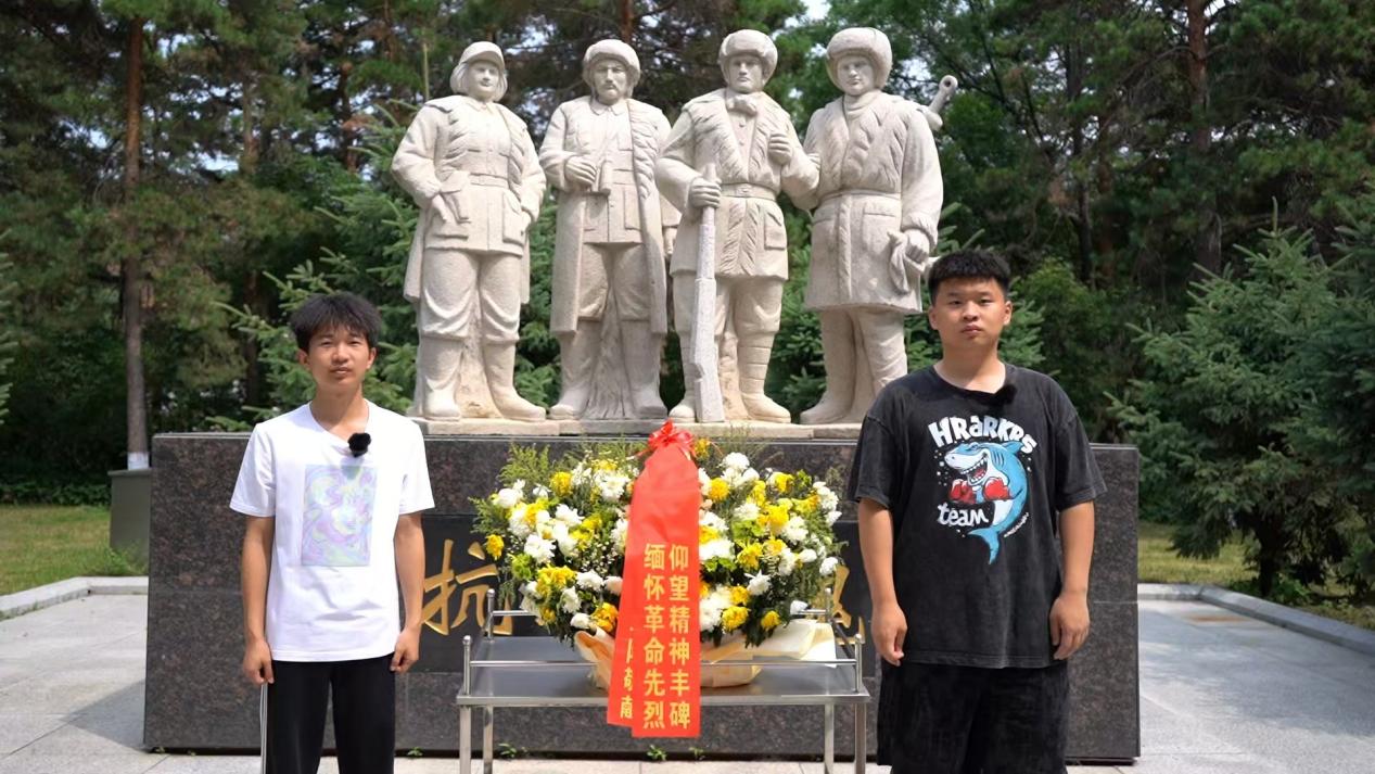 同日,實踐團隊前往哈爾濱烈士陵園,懷著崇敬之情向革命先烈敬獻菊花。在蒼松翠柏環繞的烈士紀念碑前,隊員們整齊列隊、默哀致敬,以表達對先烈的深切緬懷。