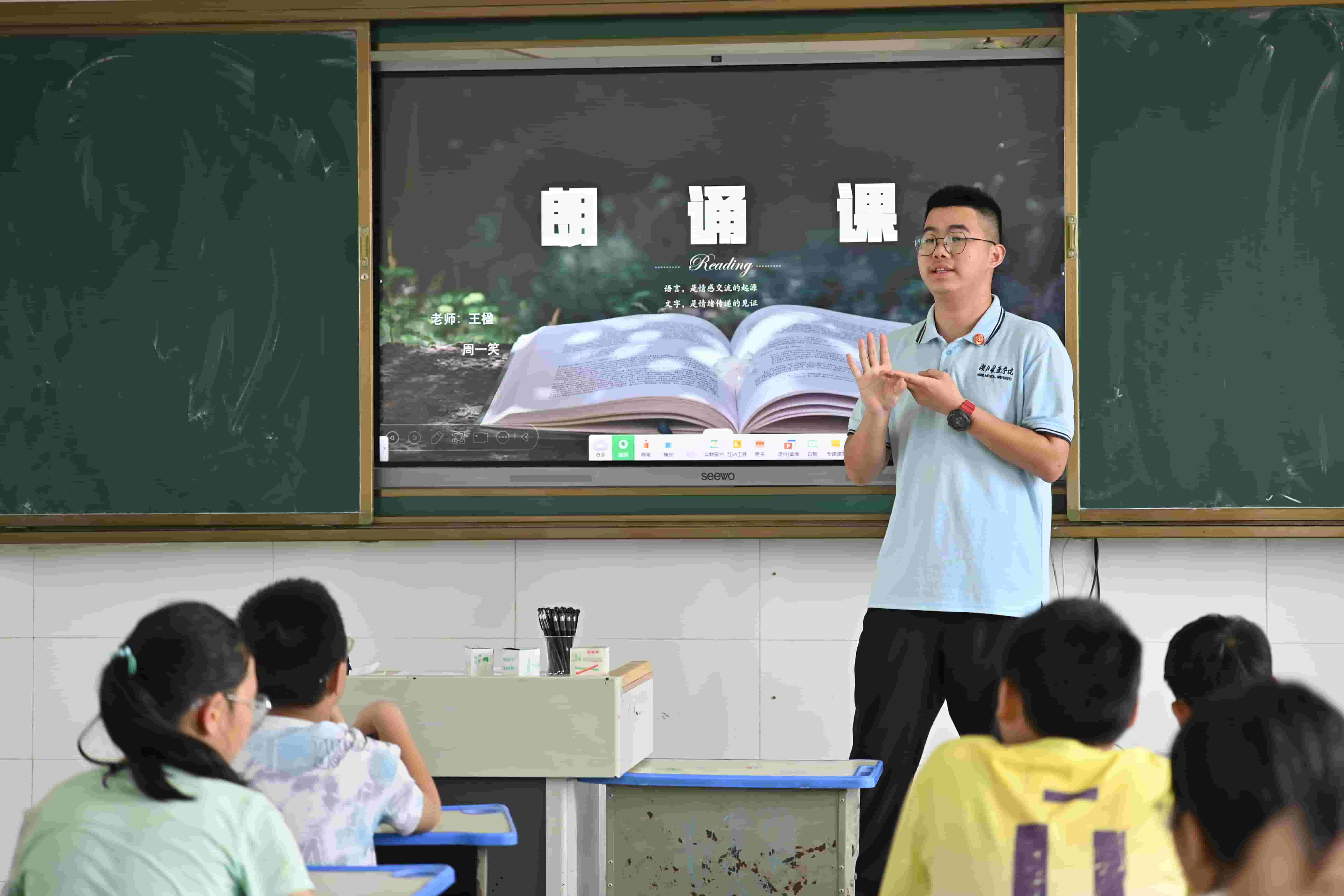 “童聲朗朗心向黨”的朗誦課上,隊員周一笑與王楹帶領孩子們走進紅色詩篇的世界。志愿者先是生動講述詩篇作者的生平故事與創作的時代背景,幫助孩子們理解文字背后的家國情懷;隨后逐句解析詩句內涵,引導大家感受字里行間的磅礴情感;最后通過領讀與跟讀,讓孩子們在聲情并茂的朗誦中,將紅色血脈的溫度與紅色精神的力量深植心間。當孩子們用飽滿的情緒吟誦先輩們的詩句時,那份跨越時空的愛國情懷變得可觸可感,也讓他們對紅色文化的認同感愈發強烈。