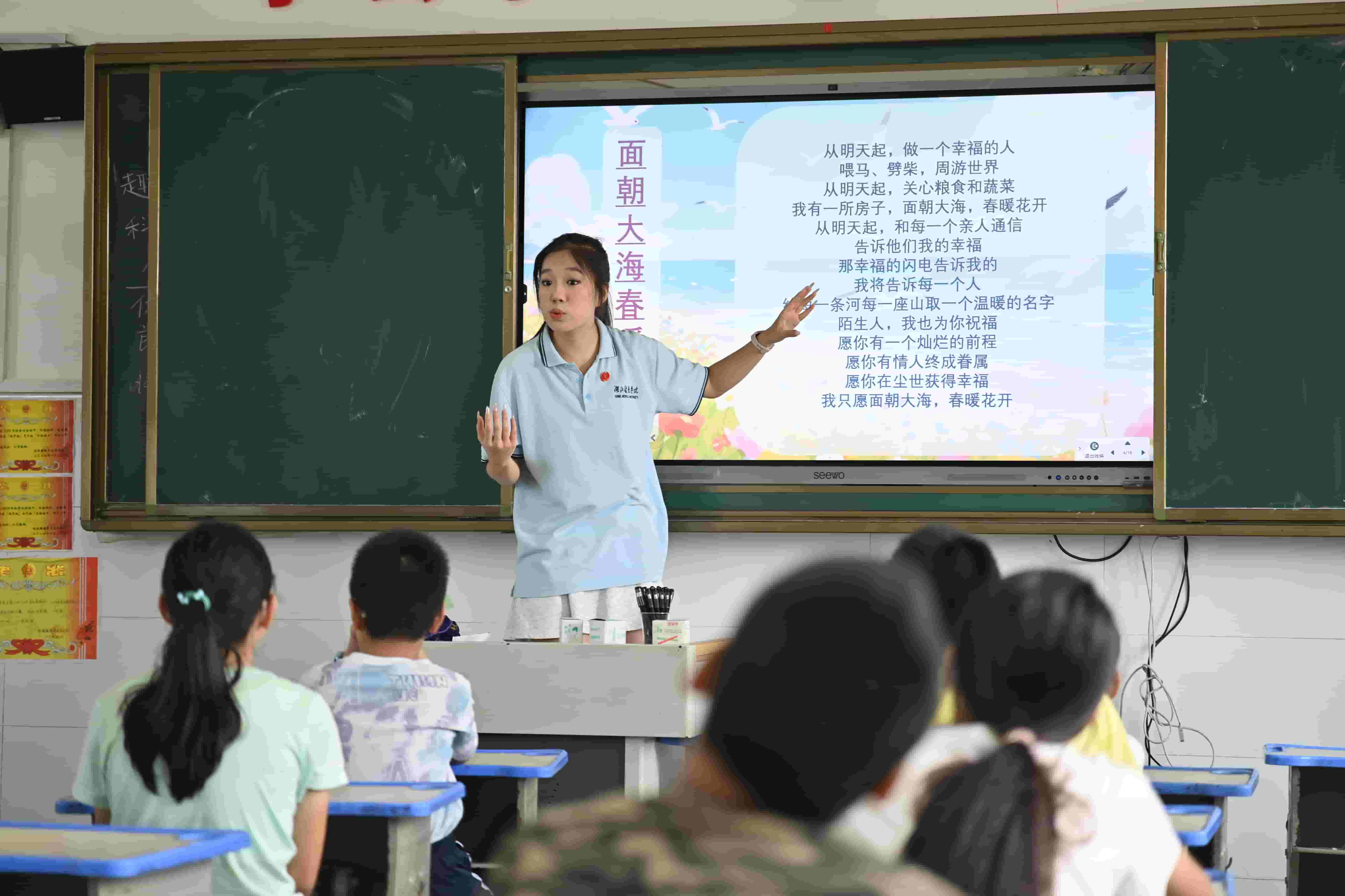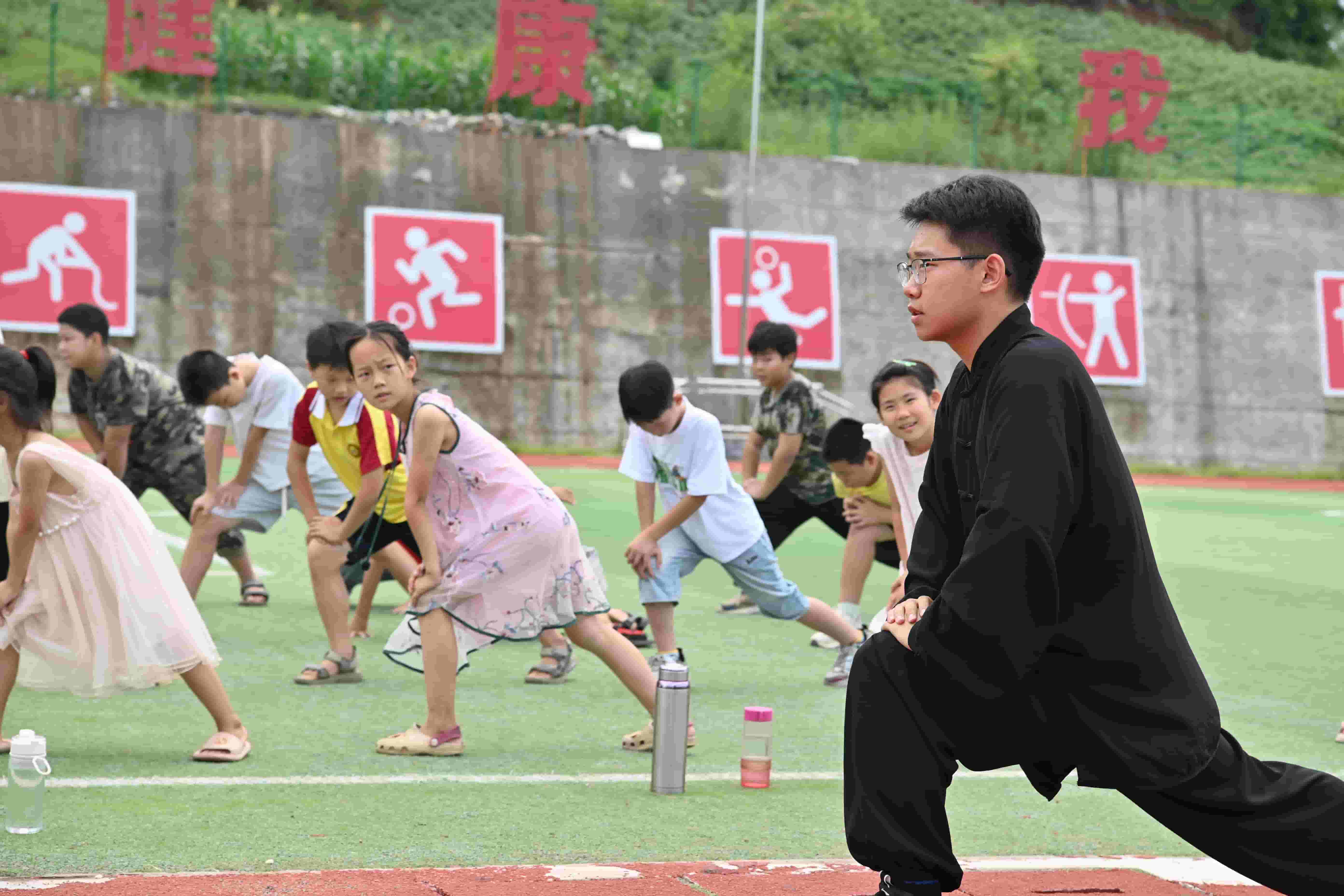 “拳風錚錚少年強”的體育課上,隊長肖博文與隊員羅錦旺帶來了中華武術的盛宴。志愿者先是展示了行云流水的武當九式太極拳,一招一式盡顯外柔內剛的東方智慧;隨后手把手教學剛勁有力的五步拳,一拳一掌皆透著中華兒女的精氣神。孩子們模仿著志愿者的動作,在一招一式的練習中,不僅強健了體魄,更真切感受到中華武術中蘊含的文化脈絡與哲學思想,讓“文明其精神,野蠻其體魄”的理念在實踐中傳承。