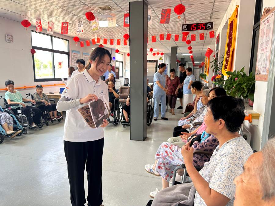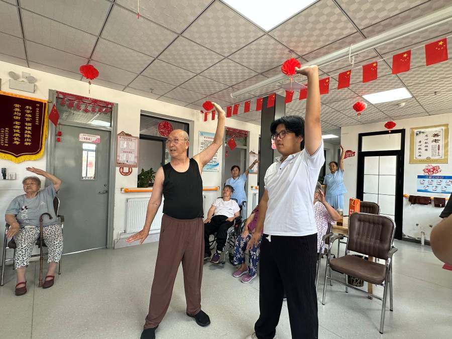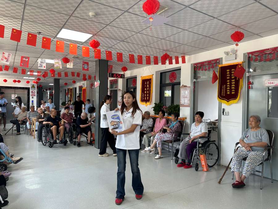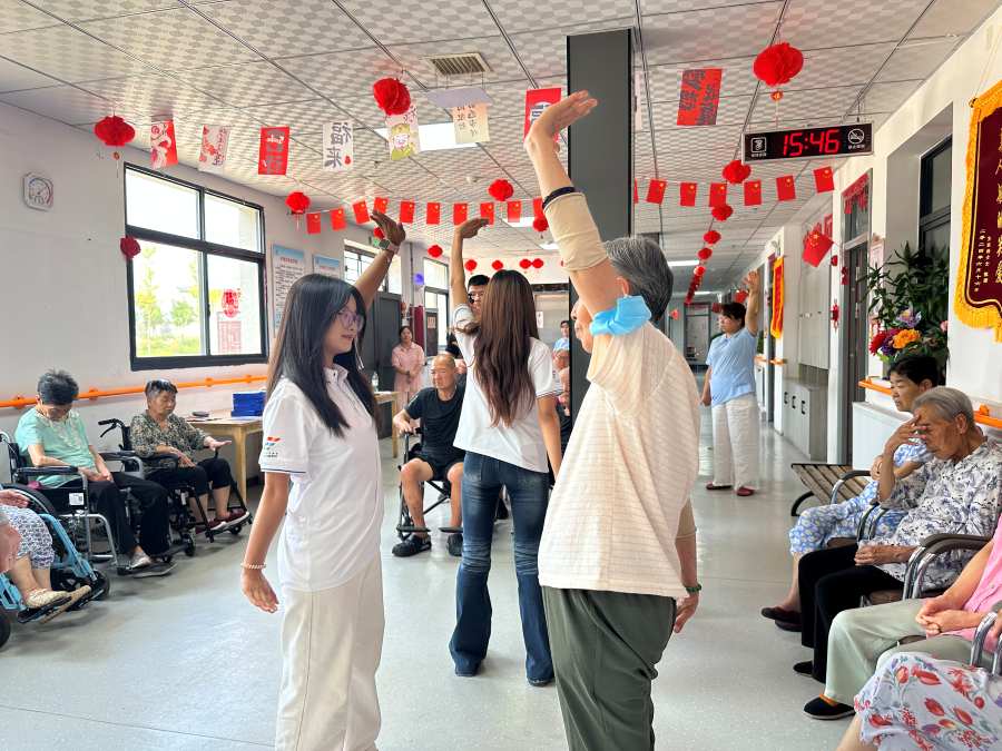 最后,實(shí)踐團(tuán)隊(duì)充分發(fā)揮自身優(yōu)勢(shì),開(kāi)展了一系列養(yǎng)老助老活動(dòng)。實(shí)踐隊(duì)員們以生動(dòng)鮮活的形式推廣普通話(huà),助力提升老年群體溝通效能;耐心示范并帶領(lǐng)開(kāi)展手指操,通過(guò)科學(xué)運(yùn)動(dòng)促進(jìn)肢體健康;現(xiàn)場(chǎng)傳授八段錦養(yǎng)生功法,引導(dǎo)養(yǎng)成健康生活方式;結(jié)合典型案例解析金融反詐知識(shí),筑牢老年群體財(cái)產(chǎn)安全防線。活動(dòng)現(xiàn)場(chǎng)互動(dòng)踴躍、暖意融融,老人們積極參與其中,充分感受青年學(xué)子傳遞的關(guān)懷與朝氣。