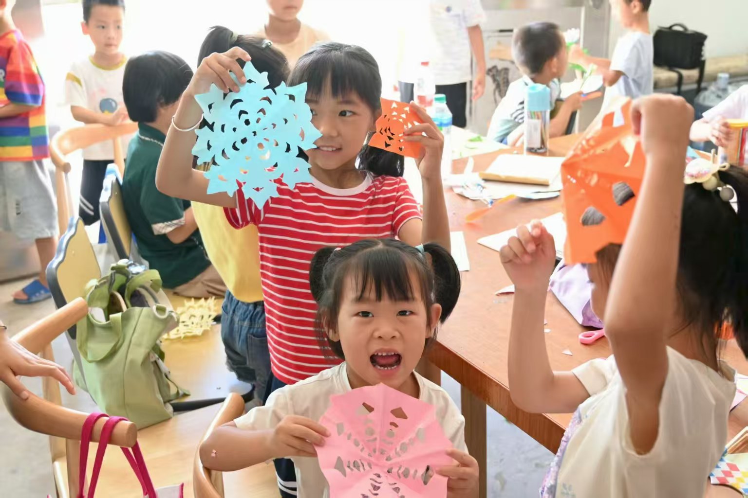 小朋友們對手工興趣濃厚,張顥毅老師為大家傳授了自己的剪紙技藝。孩子們先挑選自己喜歡的顏色,隨后老師在黑板上畫出需要在彩紙上勾勒出的圖案,孩子們認真學習操作。在老師指導下,他們小心翼翼地裁剪,最后都得到了相應的鳳尾花圖案。孩子們笑容洋溢,為自己漂亮的作品感到很滿意。張老師的剪紙課不僅帶來快樂體驗,也讓孩子們親身體會到中國傳統藝術之美。