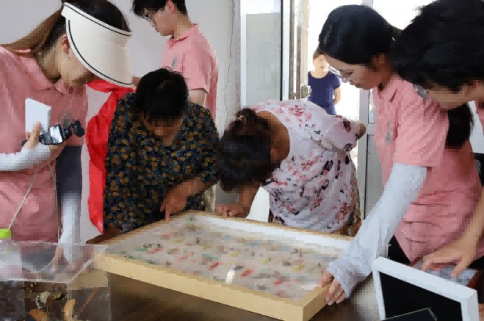 夜幕降臨,羊里街道居民廣場的燈光誘捕裝置成為最吸睛的“科學展臺”。團隊成員通過現場捕捉昆蟲和展示昆蟲標本的方式,向居民們普及昆蟲知識,生動講解了昆蟲與生態環境之間的關聯,在互動體驗中強化“科學使用生物農藥”的環保意識,讓綠色發展理念如星光般照亮鄉村夜空。
