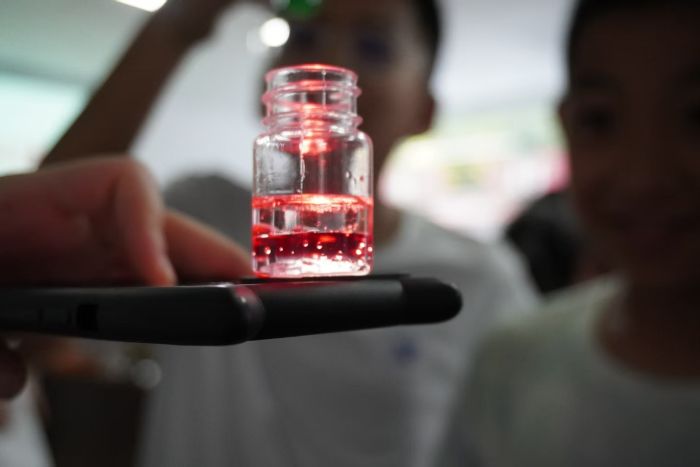志愿者帶領(lǐng)小朋友做實(shí)驗(yàn) 吳思逸攝