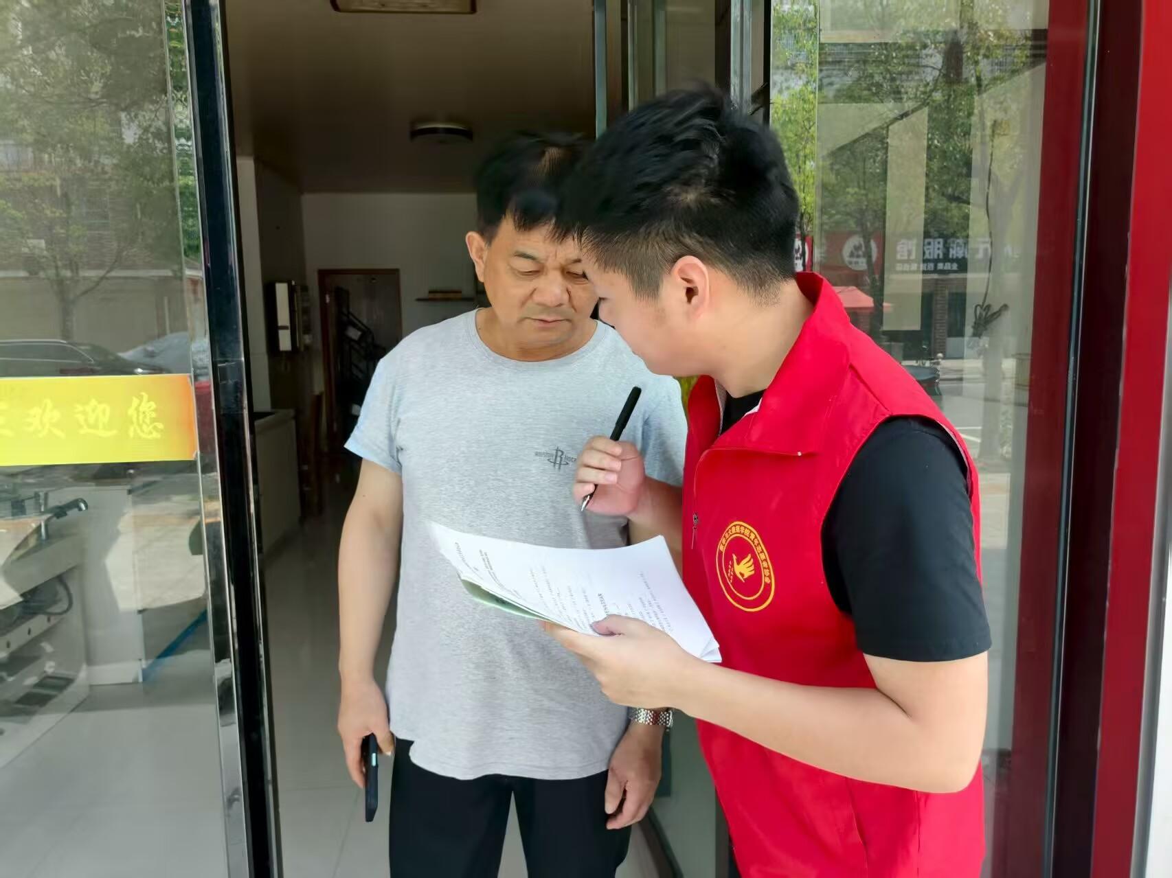 抵達同大鎮(zhèn)后,團隊成員迅速分組行動,帶著提前設計好的調(diào)查問卷,走向鎮(zhèn)內(nèi)的集市、居民區(qū)和沿街商戶。無論是正在擺攤的商販,還是乘涼閑聊的居民,隊員們都主動上前,用熱情的招呼和耐心的引導,邀請大家參與問卷填寫。過程中,他們始終保持親和態(tài)度,遇到年長或視力不佳的居民,便逐題輕聲念讀,協(xié)助完成作答,讓每份問卷都承載著真實的想法與需求。