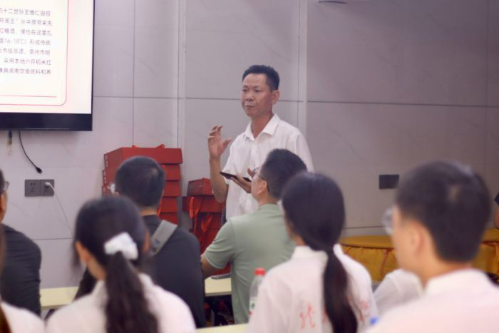 7月13日,實(shí)踐隊(duì)抵達(dá)龍涓鎮(zhèn),首站團(tuán)隊(duì)成員拜訪了紅粬酒非遺傳承人王明福及其工坊。王明福現(xiàn)場(chǎng)為大家講解了紅粬酒的歷史背景、功效與當(dāng)代發(fā)展情況,并詳細(xì)介紹了紅粬酒古法釀造中從選材備料到發(fā)酵、翻拌等十道工序。他提到“紅曲酒的靈魂在‘一糟二種三師傅四窯洞’,窯洞恒溫發(fā)酵是關(guān)鍵,最能體現(xiàn)了古法釀造的智慧”,這句話道出了紅曲工藝的精髓。