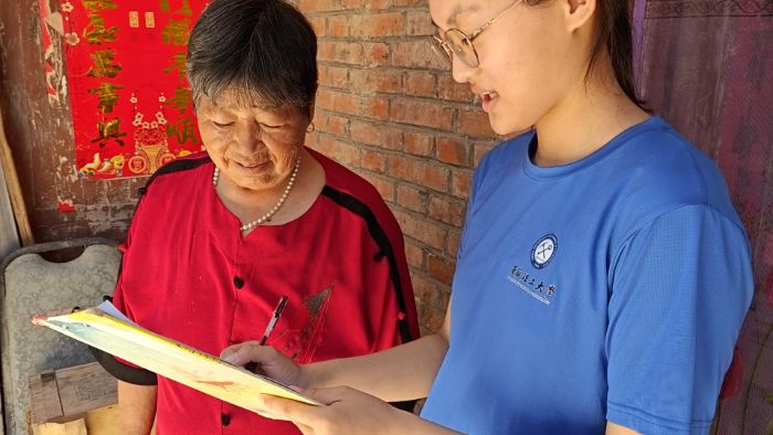 (圖為團隊成員在當?shù)亻_展紅色文化問卷調(diào)查 孟慶梅攝)