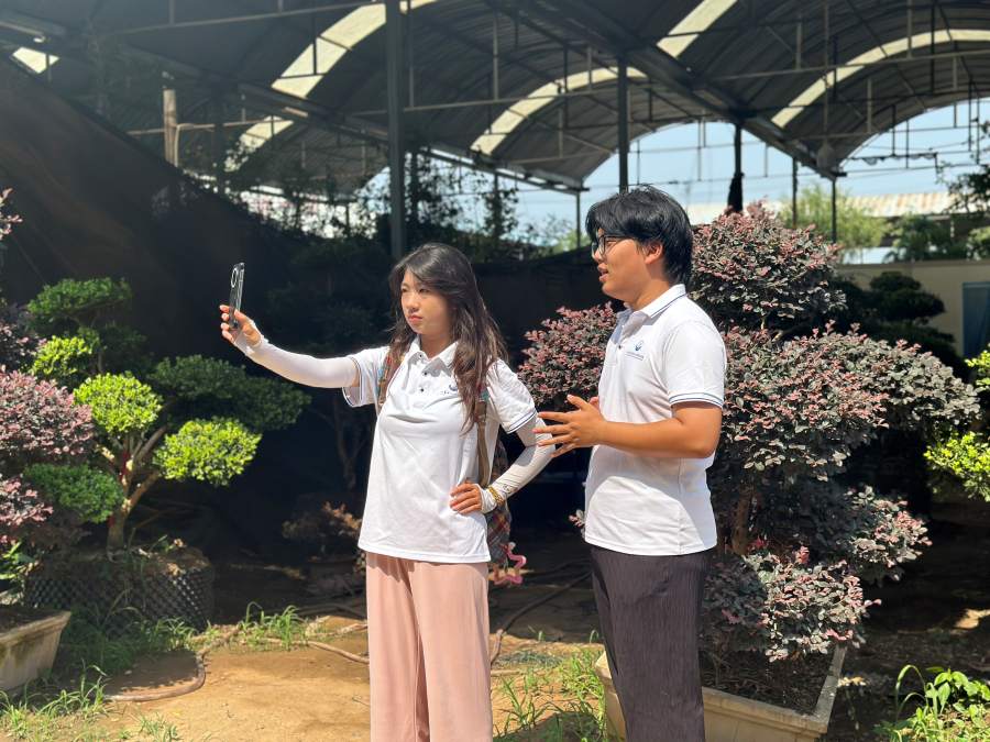緊接著,同學們化身“臨時主播”,將在基地的所見所聞娓娓道來,鏡頭前熱情講解各類苗木培育技藝等內容,通俗生動的講解收獲了網友的點贊互動,也讓更多人了解到這片苗木基地的特色與活力。