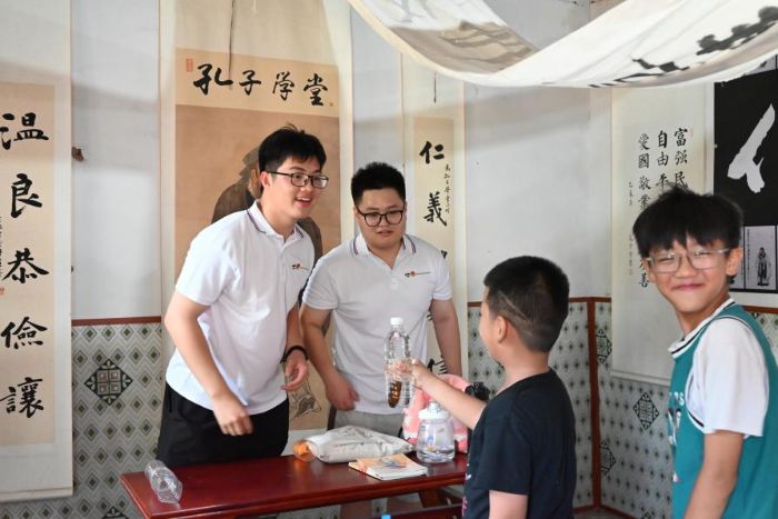 圖為實踐團成員在濟水韶音博物館的孔子學堂內(nèi)開展“浮力”趣味科普實驗。李忠哲供圖