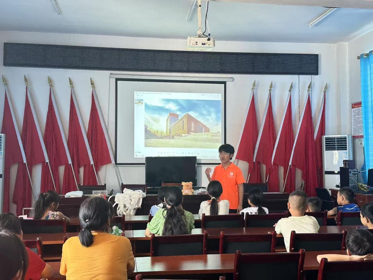 圖為實踐團成員龔煥粵向周邊小學生宣傳防溺水知識