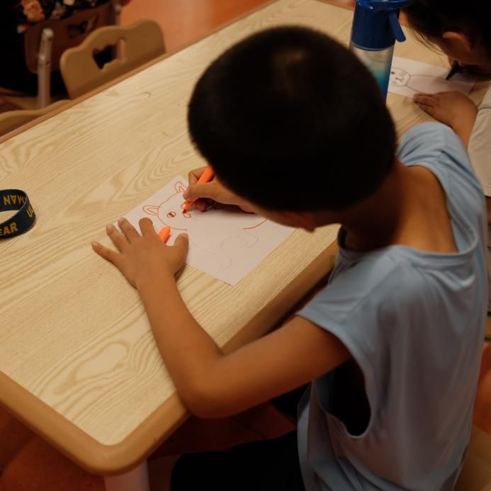 圖為孩子們正在繪制用來識別的動物卡片。梁勁供圖