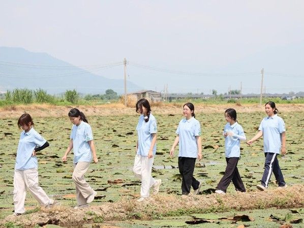 圖為肇慶學(xué)院“芡”途似錦突擊隊(duì)漫步于芡實(shí)種植地田埂間。駱璇供圖