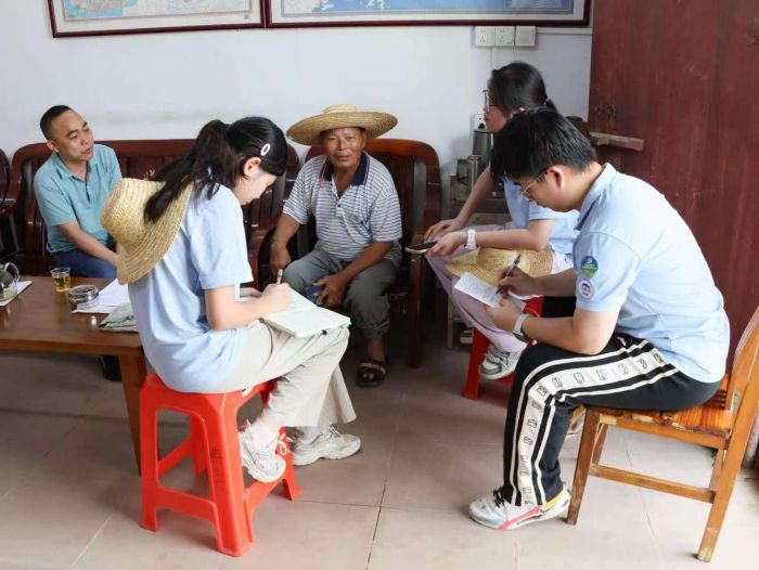 圖為肇慶學(xué)院“芡”途似錦突擊隊(duì)隊(duì)員采訪當(dāng)?shù)胤N植戶。黃茹靈供圖