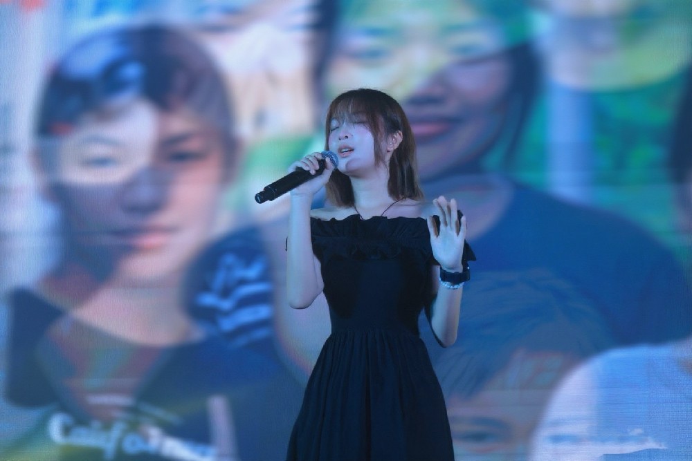 啟動儀式結束后,精彩的音樂嘉年華活動隨即拉開帷幕。海陸弘文實踐隊隊員黃嘉欣登上舞臺,為現場觀眾獻唱了歌曲《這世界那么多人》。溫柔而富有感染力的歌聲響起,悠揚的旋律在活動現場緩緩回蕩。與此同時,舞臺背景大屏上滾動播放著團隊深入汕尾田間地頭勞作、走進社區為群眾提供服務、穿梭于鄉村角落開展文化調研的照片,一幕幕真實而溫暖的畫面與動人的歌聲相互映襯,贏得了觀眾們的陣陣掌聲。