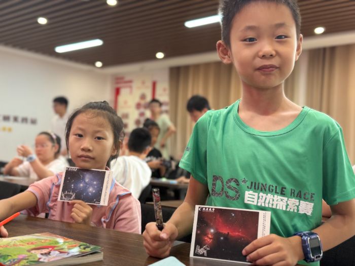 在天文明信片創意環節,孩子們展現出驚人的想象力。實踐團準備了50張分別印有月球表面、馬頭星云、昴星團圖案的明信片,讓孩子們自由創作。"宇宙之外還有什么,難道只局限于宇宙這一部分?”一名學生在明信片上寫下這些,并在文字旁邊畫了一個大大的問號。有的孩子繪制了想象中的火星基地,有的則記錄下這幾天學到的天文知識。"這些明信片我們會統一寄往全國各地,讓更多人看到孩子們的天文夢想。"實踐團成員楊博介紹道。活動結束后,不少孩子還特意多要了幾張明信片,說要帶回家繼續創作。