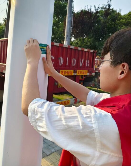 文瀾青行團小隊成員在清理電線桿上的小廣告王藝洋供圖