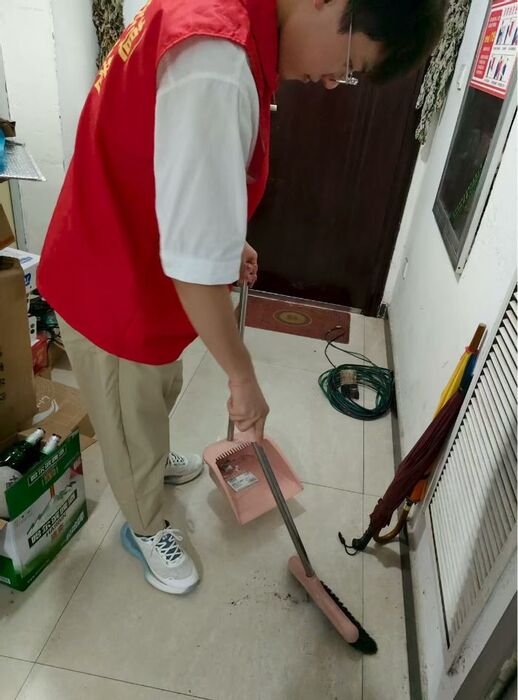 文瀾青行團小隊成員在清掃居民門口的垃圾王藝洋供圖
