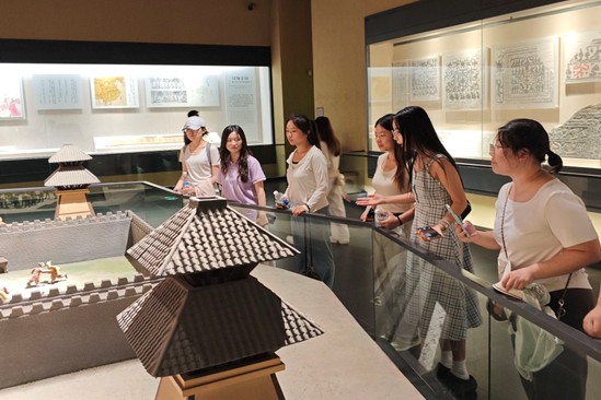 近日,山東理工大學外國語學院“齊韻·拾光”社會實踐團走進淄博,以“文化地標探訪+企業社區調研”的聯動模式,開展“觸摸古韻,探索新途”主題社會實踐。團隊先后走訪齊文化博物館、蹴鞠博物館、稷下學宮文展館等地,并深入當地文化企業、社區進行考察,通過實地探訪、科技體驗、座談交流、調研獻策等多元形式,沉浸式挖掘齊文化內涵,探索傳承新路徑。