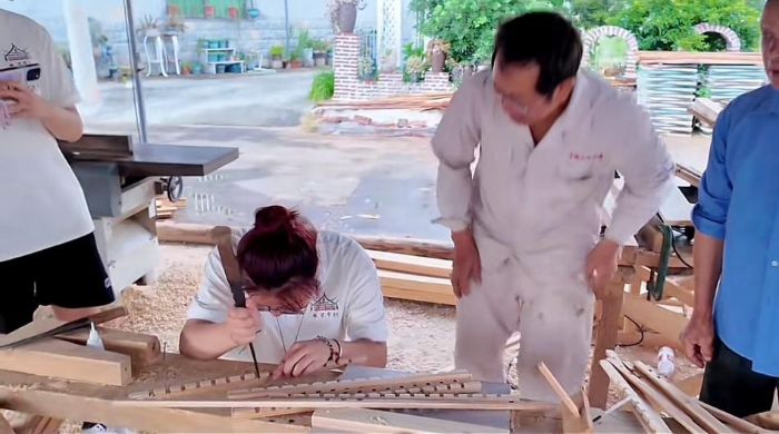 圖2實(shí)踐隊(duì)成員通過(guò)木工示范后進(jìn)行體驗(yàn)。陳梓豪供圖