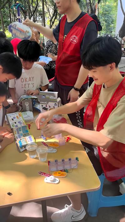 二、社區(qū)宣傳聯(lián)動(dòng),守護(hù)安全你我他 與此同時(shí),第二隊(duì)志愿者在社區(qū)廣場(chǎng)開(kāi)展用電安全宣傳。當(dāng)天上午8時(shí),志愿者到達(dá)現(xiàn)場(chǎng)布置宣傳展板、實(shí)驗(yàn)臺(tái)與互動(dòng)區(qū)域,并準(zhǔn)備實(shí)驗(yàn)材料、宣傳冊(cè)和小型獎(jiǎng)品等物資。