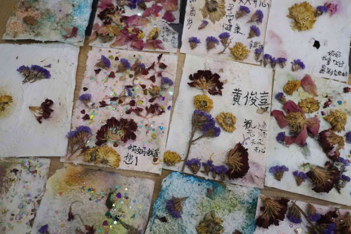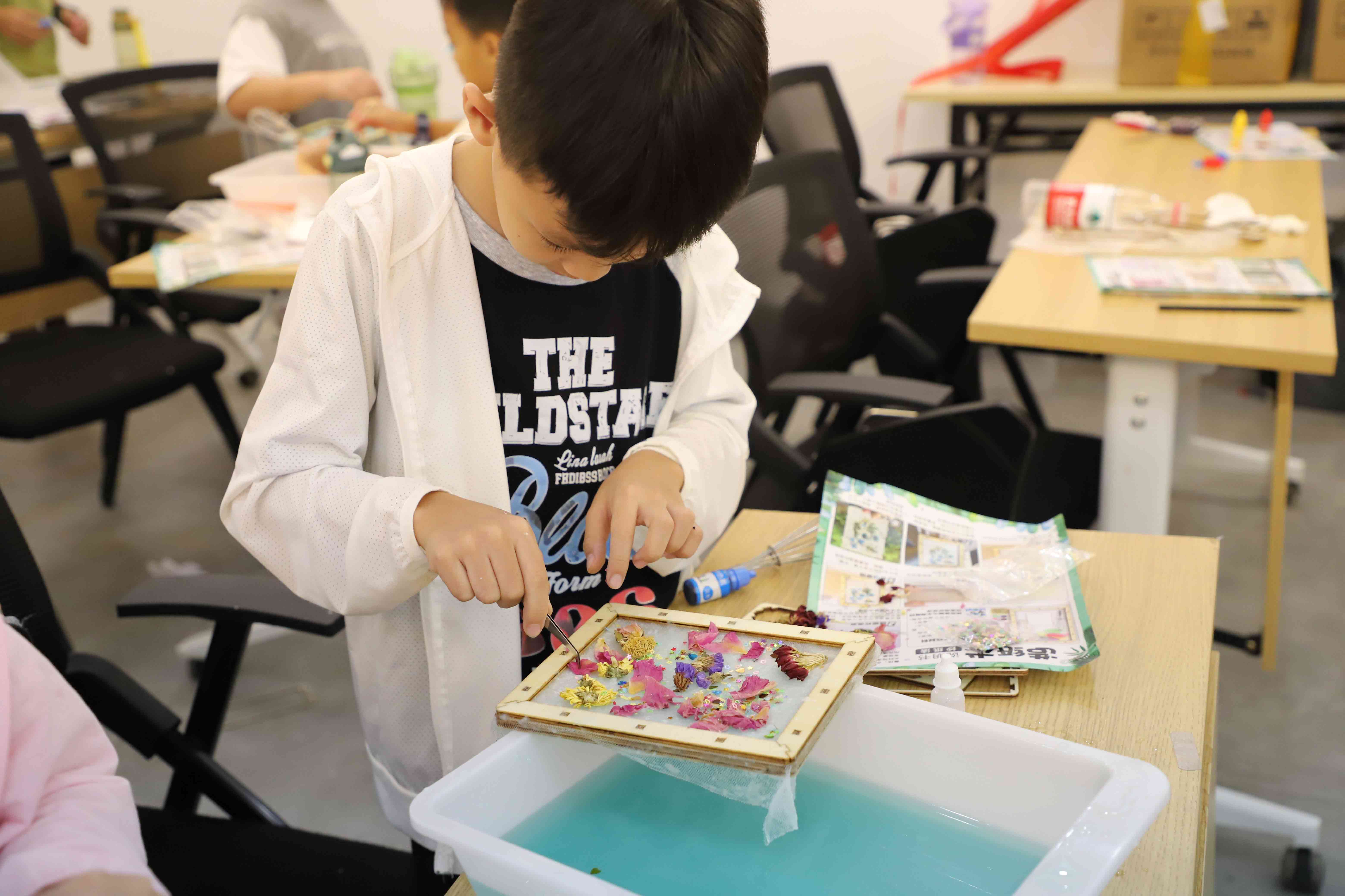 課程的最后,孩子們都捧著自己的“專屬紙張”舍不得放下。有的紙上壓著楓葉的脈絡(luò),像拓印了秋天的痕跡;有的撒滿細(xì)碎的藍(lán)花,成了獨(dú)一無二的“花箋”;還有的用顏料畫了小太陽,讓紙張煥發(fā)著童趣的光彩。當(dāng)隊(duì)員們告訴大家,這些親手造的紙可以用來寫信、畫畫,甚至做成書簽時,孩子們的眼睛亮得像星星。