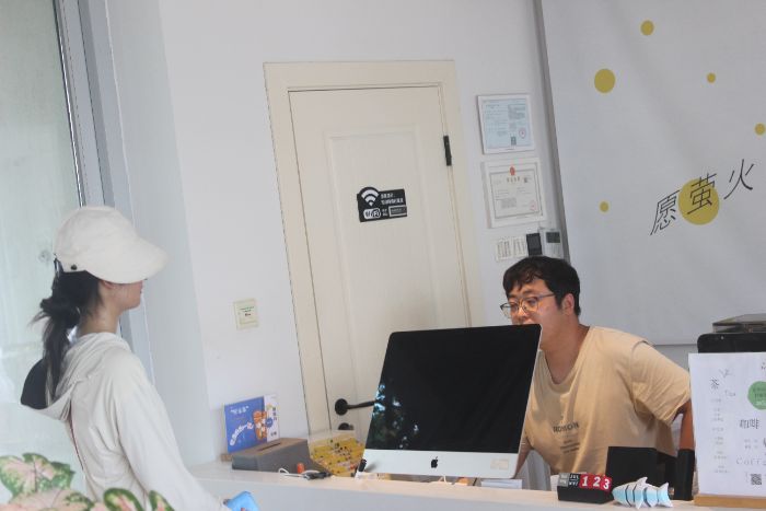 圖為實踐團成員采訪“光之營”管家。 史恩博 供圖
