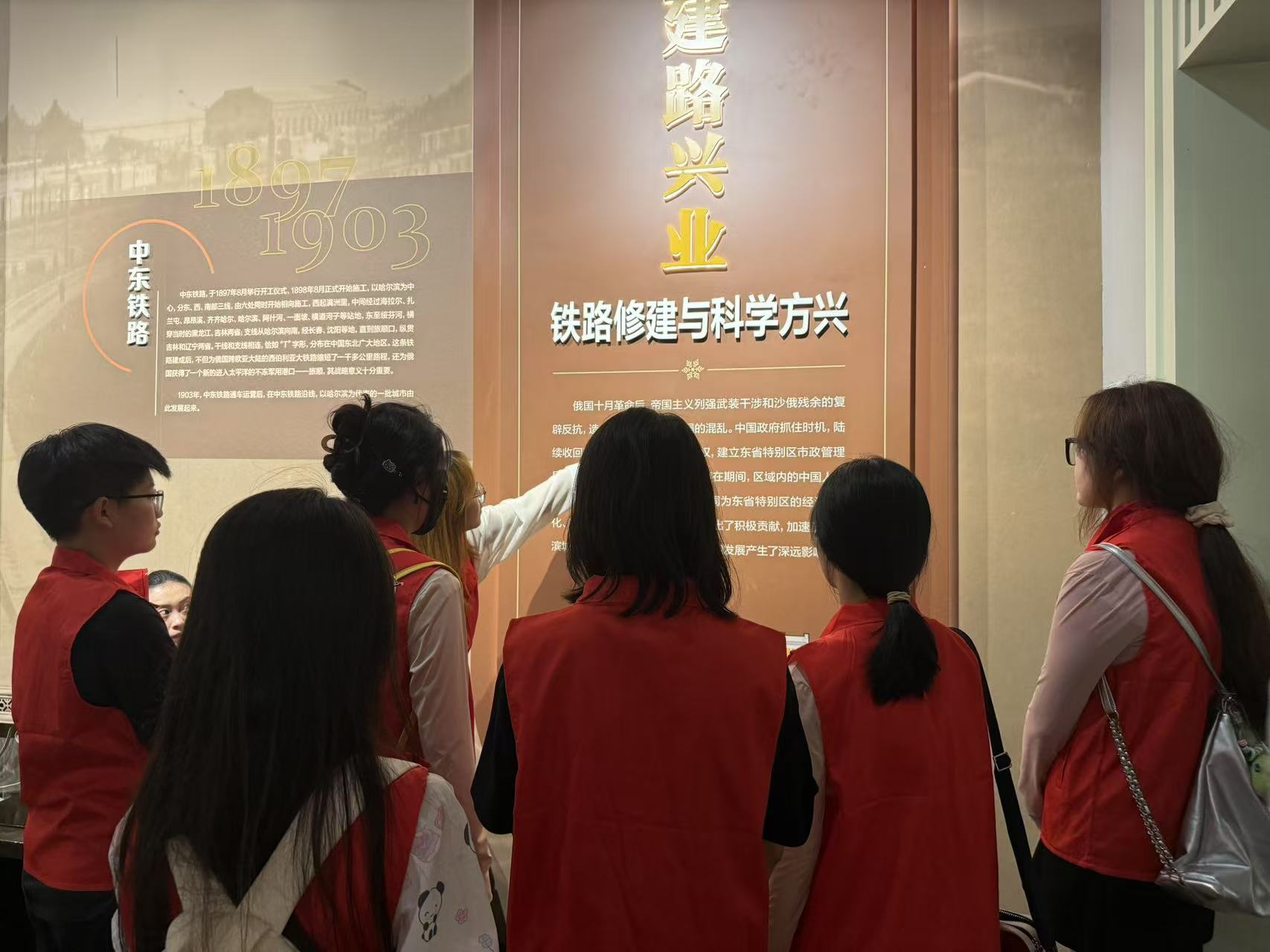 踏入館內,時光的洪流瞬間將眾人包圍。“建路興業(yè)——鐵路修建與科學方興”展區(qū),宛如一部無聲的編年史書。1897 - 1903年,中東鐵路從藍圖走向現實,展板上的文字與圖片,串聯起無數不為人知的故事。隊員們圍攏在講解隊員的身旁,目光緊鎖那些泛黃的資料——鐵路修筑時,工程師們如何克服技術難題,工人們怎樣在嚴寒與艱苦中堅守,這條鐵路又如何成為區(qū)域發(fā)展的動脈,促進科技交流與實業(yè)萌芽。
