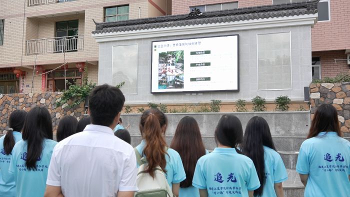 圖為實踐隊隊員在斜溪村廣場進行宣講 江德晟/提供
