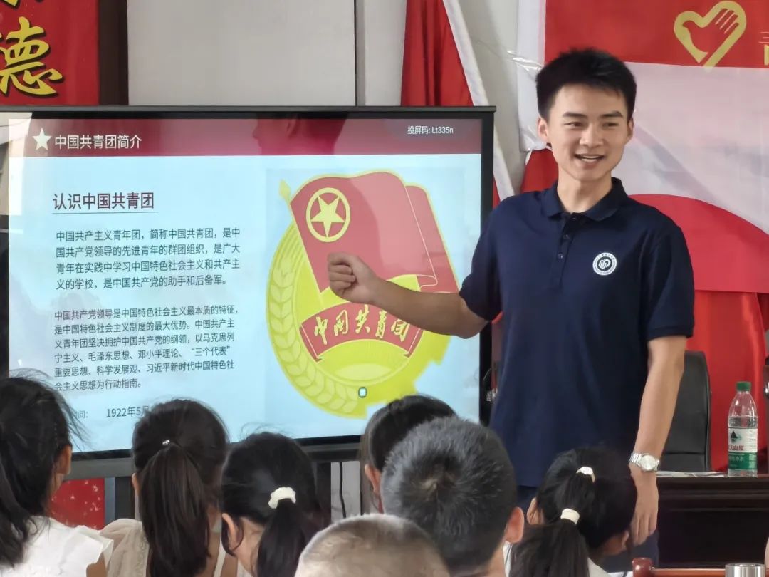 在《認識共青團》課程中,孩子們隨志愿者看團旗、唱團歌,回溯百年團史,志愿者鼓勵孩子們要有理想、有擔當、肯奮斗。孩子們對腳下的“強國之路” 有了更清晰的認識,在百年征程故事里找到自己的強國坐標,理想與擔當從此生根。