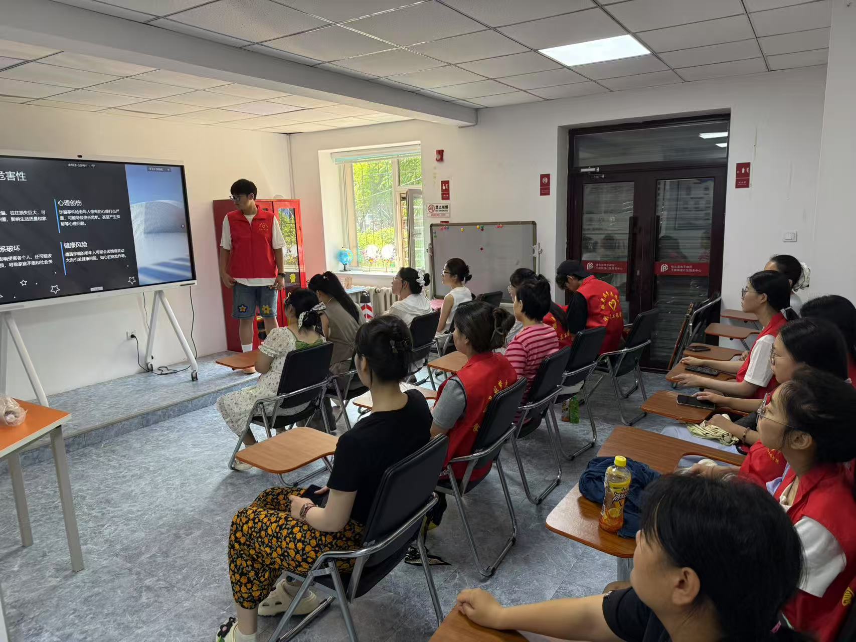 圖:微光筑夢志愿小隊隊長齊思宇開展課堂宣傳反詐知識