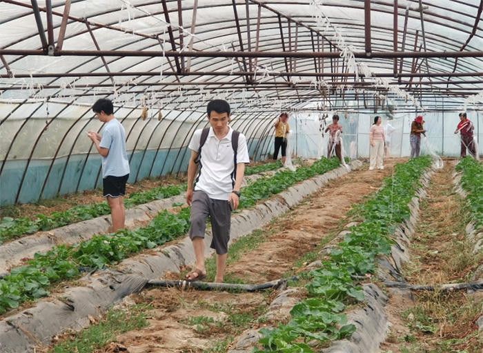 7月21日至25日,隊員們駐扎賀村集村,開展為期五天的田間勞動實踐。在張樹鋒書記的指導下,團隊進入悶熱的蜜瓜大棚,學習鋪設澆灌管道、覆蓋地膜,協助運送瓜苗、農藥,親身體驗“汗滴禾下土”的辛勞,深刻理解現代農業精細化管理的重要性,將理論知識與農耕實踐緊密結合。信息與計算科學2303班楊昊看著剛覆好的地膜感慨道:“以前總覺得種地靠經驗,現在才知道,從溫度控制到水肥管理,每一步都得精準把控,每個環節都凝聚著技術含量與管理智慧。”