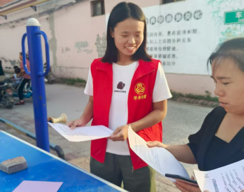 問卷“大調(diào)研”:文化述說、民意調(diào)查 實踐團隊帶著學習紅色文化,推動紅色文化多藝術(shù)形態(tài)傳播的熱枕進入平鄉(xiāng)縣柴口村的民眾中去。在和大家的交流和調(diào)查問卷發(fā)放過程中,紅色文化不再是遙遠的歷史,而是融入當下生活的價值指引。民眾以話語講訴紅色文化的過往,實踐團隊成員以行動詮釋紅色精神的時代內(nèi)涵,讓“奉獻、擔當”在鄉(xiāng)土村間落地生跟,也為紅色文化傳播注入青春活力。