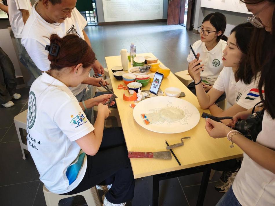 2025年7月14日上午九點,廣州新華學院“潮”砌蓬勃突擊隊前往潮州嵌瓷博物館采訪盧芝高、盧渤鑫、許名泰等多位傳承人,并在他們的指導下完成團隊IP“阿瓷”的制作,以創新形式探索非遺活化路徑。讓我們跟隨三位大師的講述,走進嵌瓷藝術的傳承與未來。