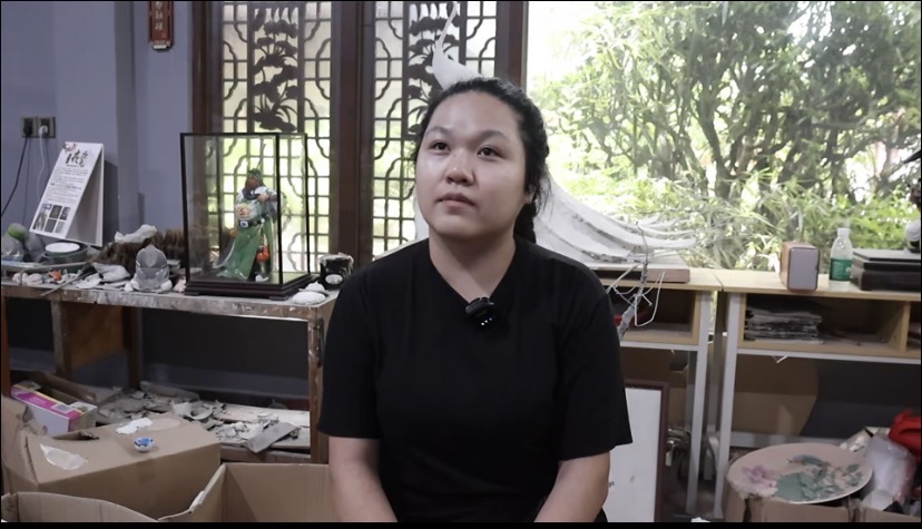 嵌瓷學習者謝詠琳是一名來自揭陽的高中生,今年是暑假期間從師學習嵌瓷的第二年,她認為嵌瓷是一門非常有趣的藝術活,但她發現身邊大多數人對嵌瓷的了解十分匱乏,所以想通過自己的力量讓嵌瓷繼續傳承下去。
