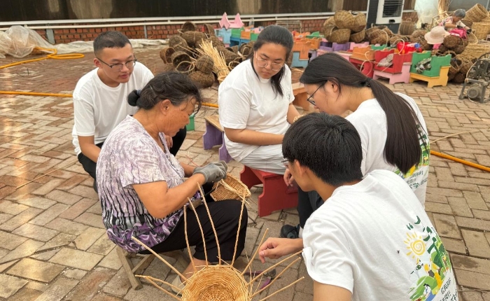 隨后,非遺傳承人現場演示了臨沭柳編工藝。柔韌的柳條在匠人手中上下翻飛,不一會兒就變成了精美的果籃、收納盒等工藝品。大家認真學習技藝,親身動手實踐,團隊成員紛紛表示,正是這份精益求精的工匠精神,才讓傳統技藝歷久彌新。