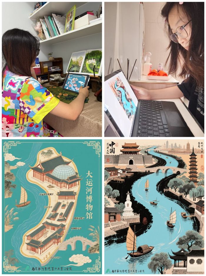此次暑假,團(tuán)隊(duì)以先前調(diào)研資料為抓手,帶著明確的研究目標(biāo),分工協(xié)作。7月28日至7月30日,通過對(duì)運(yùn)河輿圖、漕運(yùn)檔案,及文物細(xì)節(jié)的整合研究,團(tuán)隊(duì)制作了博物館導(dǎo)航圖、運(yùn)河水脈宣傳海報(bào)等宣講材料,力求將散落的歷史碎片整合為脈絡(luò)清晰、內(nèi)涵豐富的運(yùn)河文化知識(shí)體系,為后續(xù)運(yùn)河水脈“活化”傳播打下堅(jiān)實(shí)基礎(chǔ)。