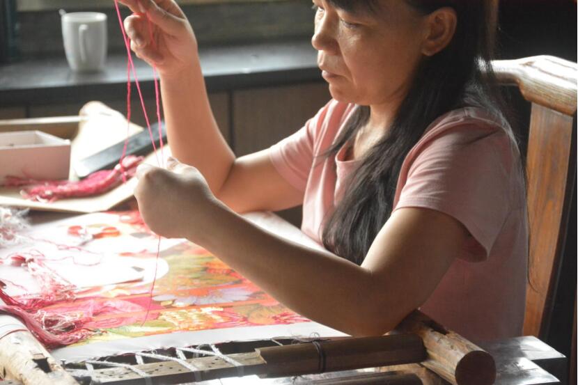 圖:天利湘繡博物館的繡娘正在制作繡品