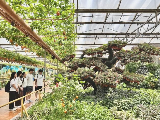 在蔬菜文化藝術館,形態(tài)各異的蔬菜雕塑,創(chuàng)意十足的景觀造型,農(nóng)業(yè)與藝術巧妙融合讓實踐隊成員眼前一亮。景觀與蔬菜融為一體,蔬菜作物搭配紅色元素,這正是壽光實現(xiàn)農(nóng)業(yè)全鏈蝶變,拓展農(nóng)文旅融合發(fā)展,讓土地生出致富希望的生動實踐。